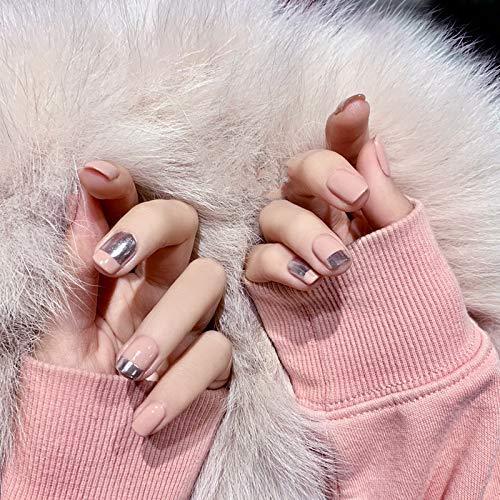 24pcs ネイルチップ 甘くて可愛い 夢幻 カーキ 暈し染め グラデーション 短いさネイルチップ